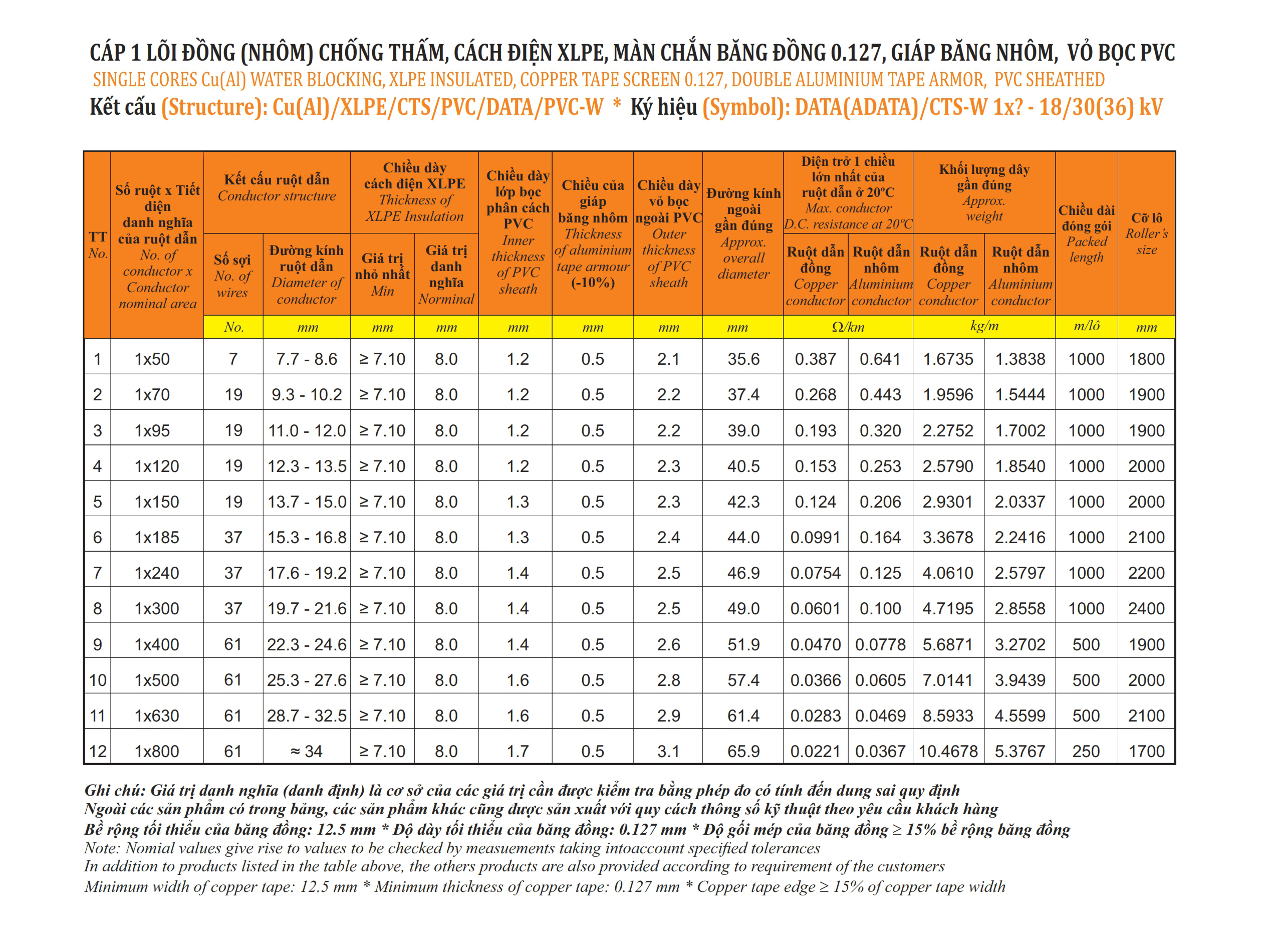 CÁP 1 LÕI, MÀN CHẮN BĂNG ĐỒNG, GIÁP BĂNG NHÔM - DATA(ADATA)/CTS-W 1X? - 18/30(36) KV