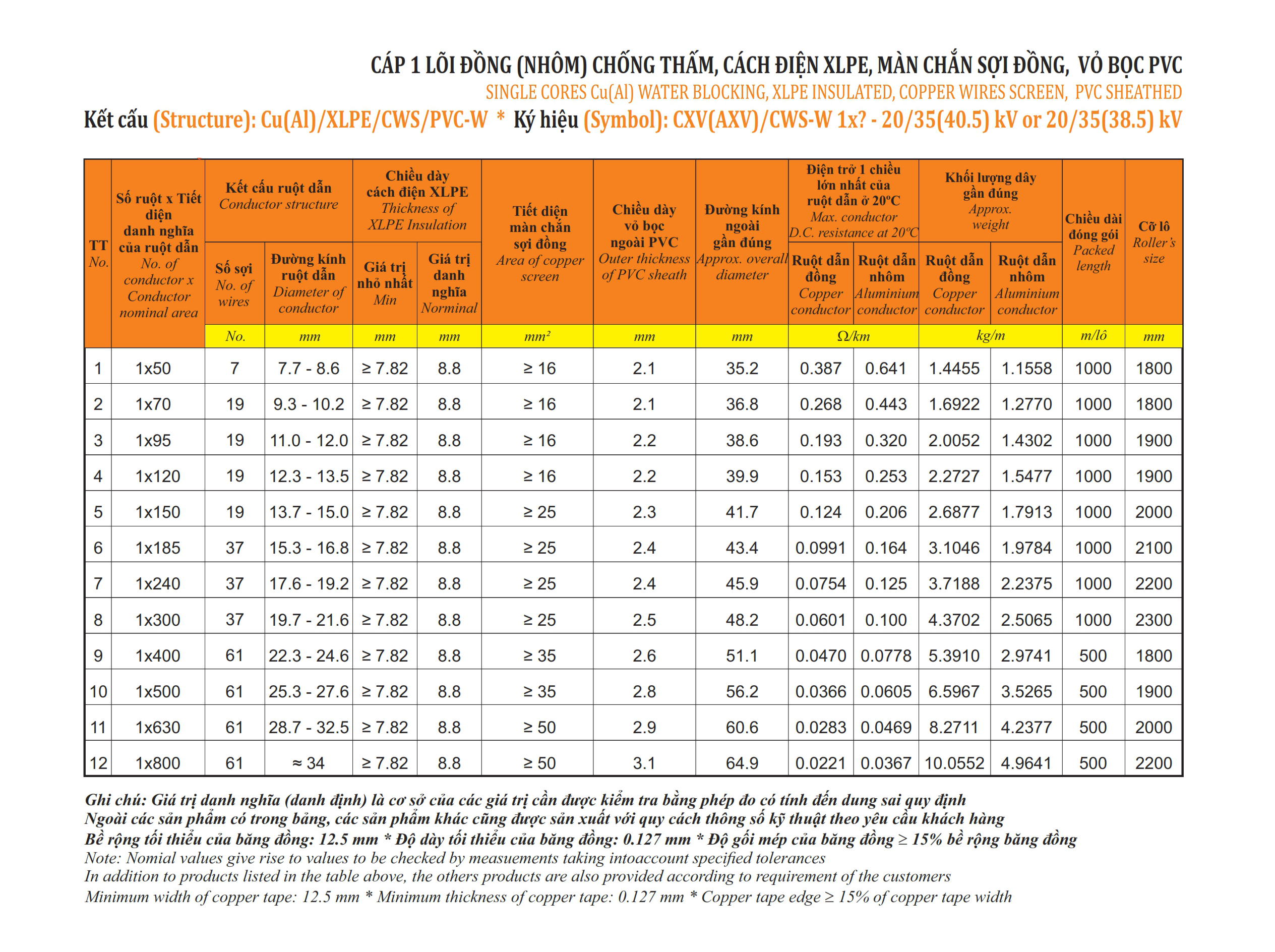C(A)XV/CWS-W 1X? - 20/35(40.5) HOẶC 20/35(38.5) KV