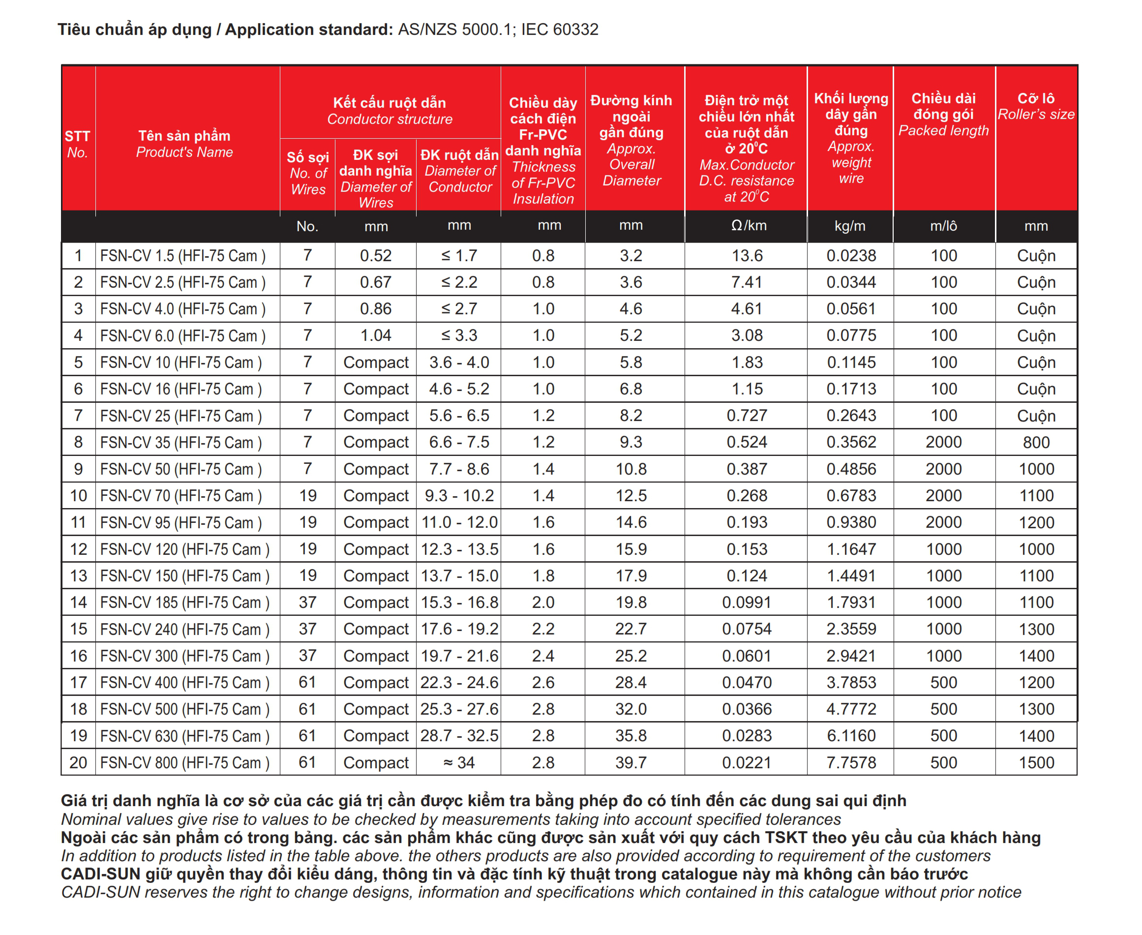 - Mặt cắt danh định: Từ 1.5 mm2 đến 1000 mm2