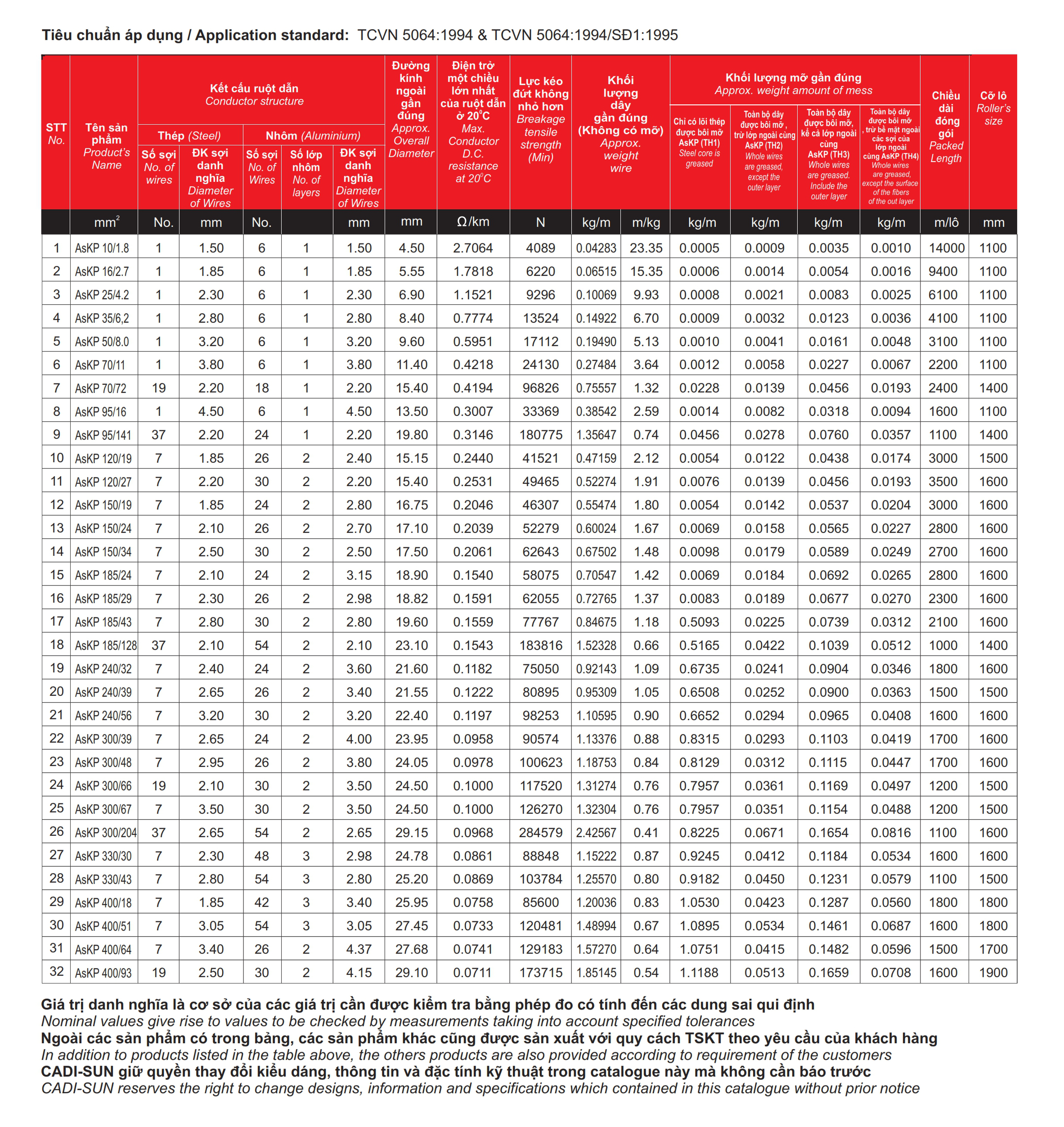 - Ruột dẫn: Nhôm và thép mạ kẽm